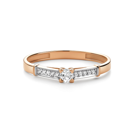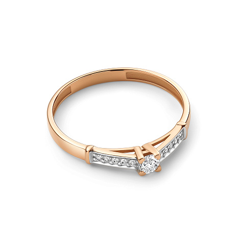 Элегантное кольцо выполнено из красного и белого золота 585 пробы, создавая гармоничный контраст между двумя оттенками металла. В центре композиции находятся сверкающие бриллианты, которые подчеркивают изысканность и роскошь изделия. Высокое качество изготовления и сочетание благородных материалов делают кольцо достойным дополнением к вашему образу, подчеркивая ваш стиль и индивидуальность. Представлено брендом АЛЬКОР. Средняя характеристика камней: 1 Бриллиант Круг 57 0.115 4/6, 10 Бриллиант Круг 57 0.045 4/6 В комплект поставки входит: