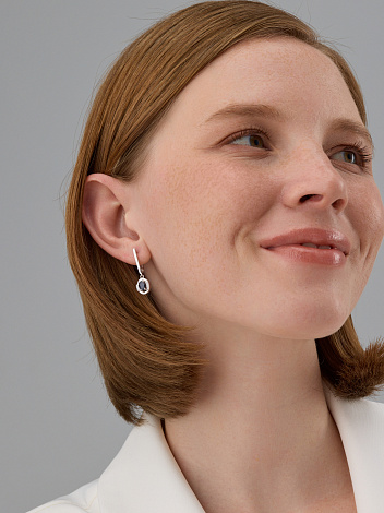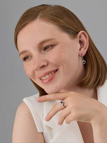 Серебряные серьги 925 пробы с сапфирами и фианитами на английской застежке очаровательны и изысканы