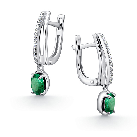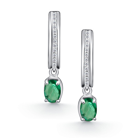 Серебряные серьги 925 пробы с изумрудами и фианитами порадуют поклонников элегантности и высокого вкуса