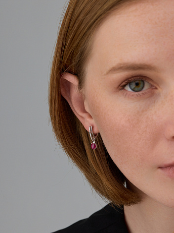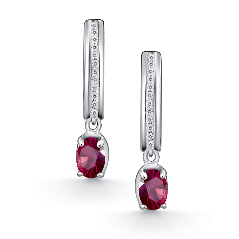Серебряные серьги 925 пробы с рубинами и фианитами и английской застежкой источают настоящую магию роскоши