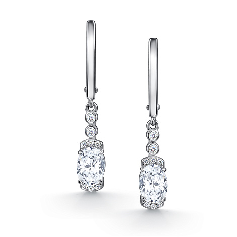 Удлинённые серебряные серьги 925 пробы с горным хрусталём и фианитами