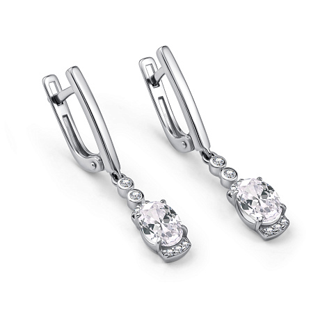 Удлинённые серебряные серьги 925 пробы с горным хрусталём и фианитами. Горный хрусталь отражает солнечные лучи своими гранями, создавая неповторимую игру света, а фианиты добавляют украшению дополнительный объём и элегантность. Подходят как для офисного стиля, так и для праздников и вечеров, помогают завершить создание уникального образа. Представлено брендом АЛЬКОР. Средняя характеристика камней: 2 Горный хрусталь Белый Овал 1,42, 4 Фианит Белый Круг 0,112, 12 Фианит Белый Круг 0,108 В комплект поставки входит: