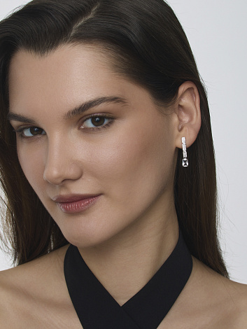 Серебряные серьги 925 пробы с горным хрусталем и фианитами совмещают прозрачность и загадочность горных кристаллов с игривостью фианитов