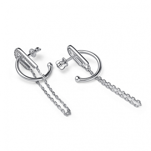 Удлинённые серебряные серьги-пусеты 925 пробы с фианитами — это элегантное украшение, которое создаст утончённый и изысканный образ