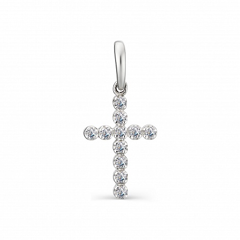 Подвеска в виде креста, выполнена из серебра 925 пробы, украшена россыпью сверкающих фианитов. От бренда Алькор.