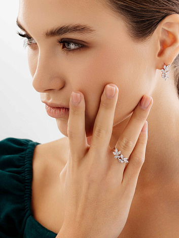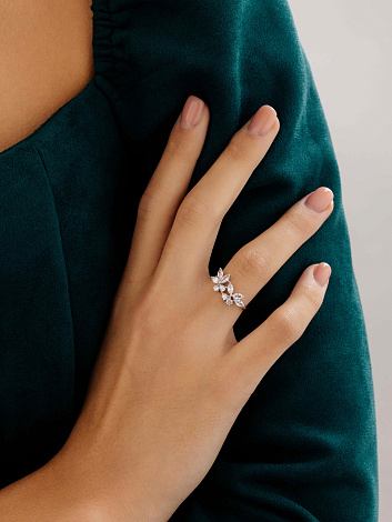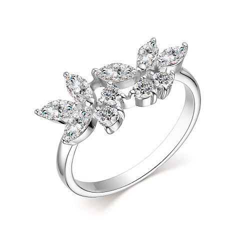 Красивое серебряное кольцо выполнено из качественного серебра 925 пробы и украшено множеством маленьких фианитов, которые сверкают на свету, создавая эффект сияния. Такое кольцо станет прекрасным дополнением к вашему образу, привнесет нотку элегантности и стиля. Благодаря высокому качеству изготовления и использованию качественных материалов, кольцо прослужит долго, сохранив первоначальный блеск и красоту. Представлено брендом АЛЬКОР. Средняя характеристика камней: 6 Фианит Белый Маркиз 1,195, 4 Фианит Белый Круг 0,497 В комплект поставки входит: