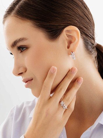 Красивое серебряное кольцо выполнено из качественного серебра 925 пробы и украшено множеством маленьких фианитов, которые сверкают на свету, создавая эффект сияния