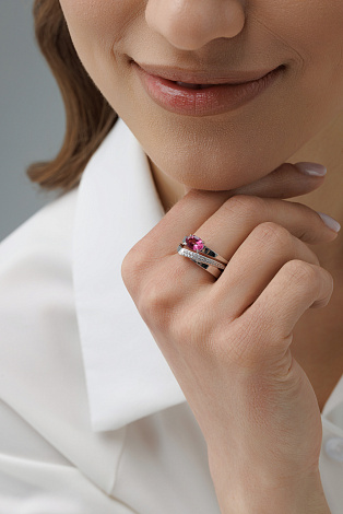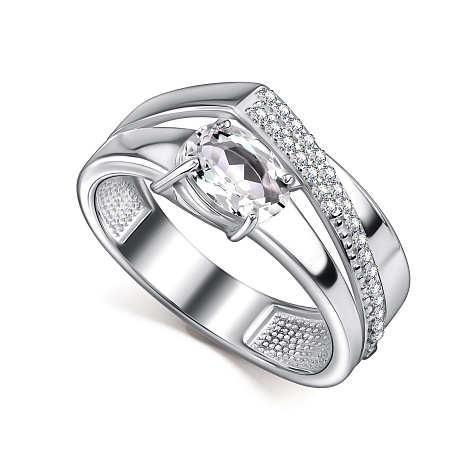 Элегантное серебряное кольцо, выполненное из высококачественного серебра 925 пробы, увенчано великолепным горным хрусталём, окружённым сверкающими фианитами