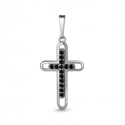 Декоративный крестик выполнен из качественного серебра 925 пробы и украшен черными нанокристалами
