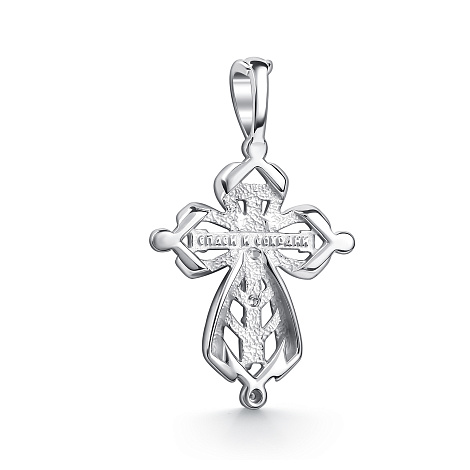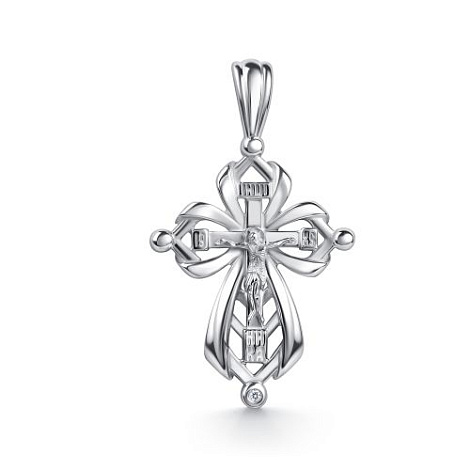 Православный серебряный крест с бриллиантом — это сакральный символ христианской веры, изготовленный из благородного металла и украшенный драгоценным камнем