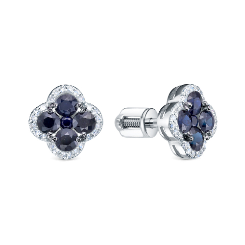 Серьги-пусеты с натуральными сапфирами, красоту и глубокий цвет которых подчёркивает дорожка сверкающих бриллиантов, выполнены из белого золота 585 пробы. Такое украшение может стать отличным подарком для тех, кто ценит роскошь и изысканность. Тип замка - винтовой, самый надежный и комфортный.