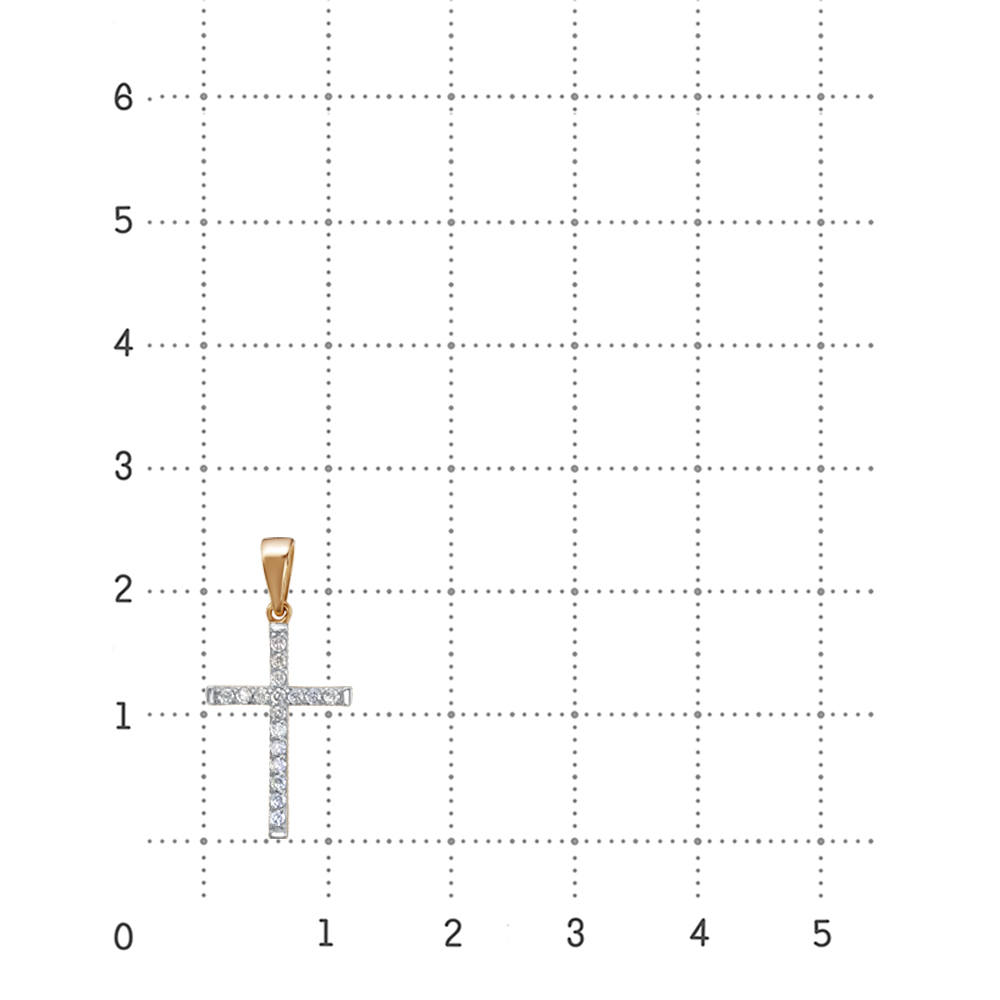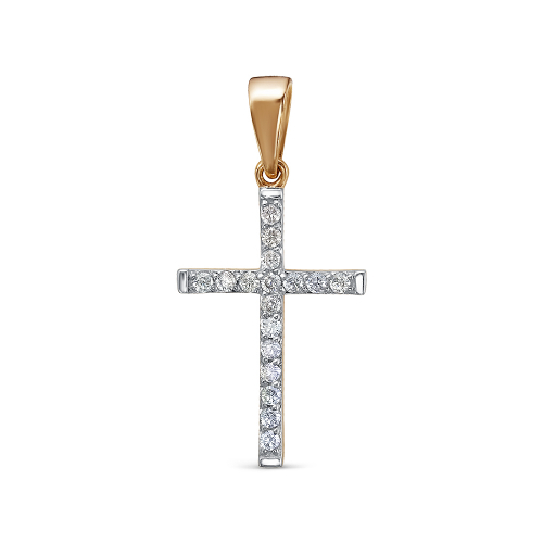 Стильная подвеска в виде декоративного креста, украшенного бриллиантами, выполнена с сочетанием красного и белого золота 585 пробы. Белое золото визуально увеличивает объём бриллиантов и подчеркивает их блеск и природную красоту.