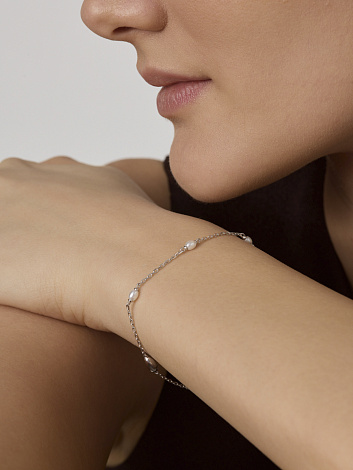 Серебряный цепочный браслет 925 пробы с жемчугом — это изящное украшение, подчеркивающее утонченность и элегантность