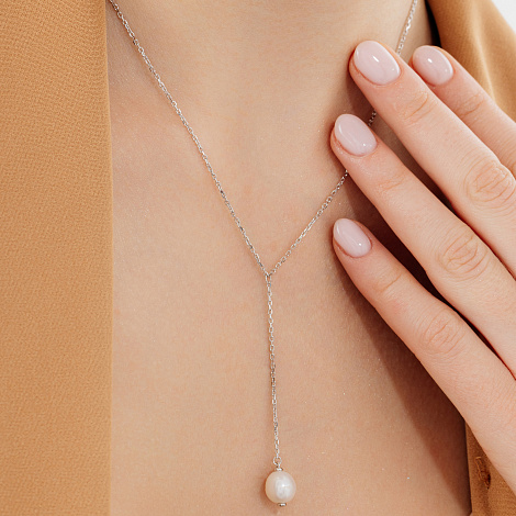 Серебряное колье 925 пробы с подвеской из жемчуга — это элегантное украшение, сочетающее в себе благородство серебра и природную красоту жемчужин