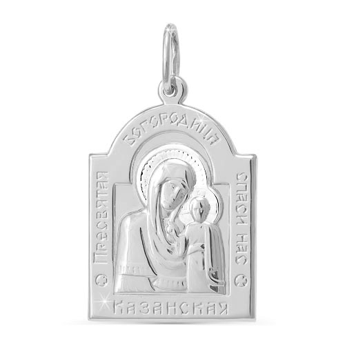 Серебряная подвеска-икона 925 пробы «Казанская Божья Матерь» — это красивая миниатюра, запечатлевшая знаменитый русский образ Казанской иконы