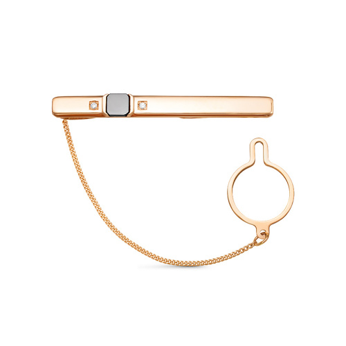Зажим для галстука из красного золота 585 пробы с крупным черным фианитом — это элегантный аксессуар, подчёркивающий высокий статус и безупречный вкус владельца