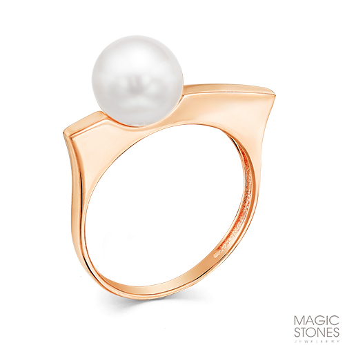 Нежное кольцо, выполнено из красного золота 585 пробы, украшено великолепной жемчужиной
