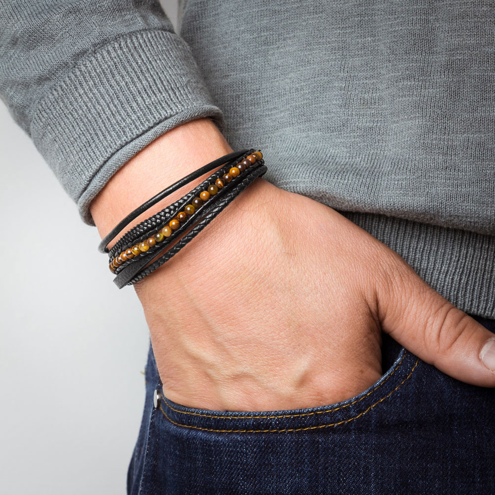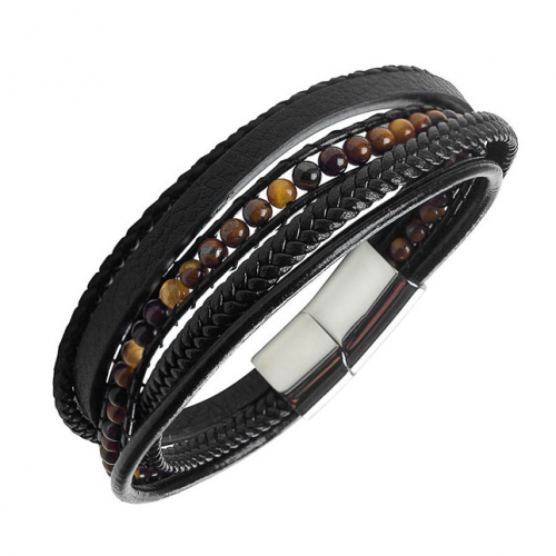 Стильный мужской браслет из плетеной кожи, дополненный стальным элементом. Эффектное дизайнерское сочетание кожи и бусин тигрового глаза обращает на себя внимание именно тех мужчин, которые стремятся подчеркнуть свою индивидуальность и выделиться из толпы. Изделие представлено брендом ANTON SMITH. В комплект поставки входит: