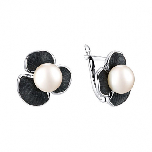 Серебряные серьги с белым жемчугом и черной эмалью — это элегантное украшение, где благородный белый жемчуг эффектно контрастирует с глянцевой черной эмалью, создавая стильный и гармоничный образ