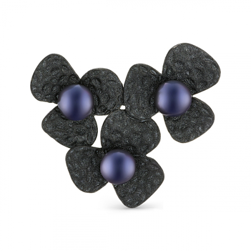 Серебряная брошь 925 пробы с тремя синими жемчужинами и эмалью — это элегантное украшение, в котором изысканность серебра, природная красота жемчуга и гладкость эмали сливаются в гармоничный образ