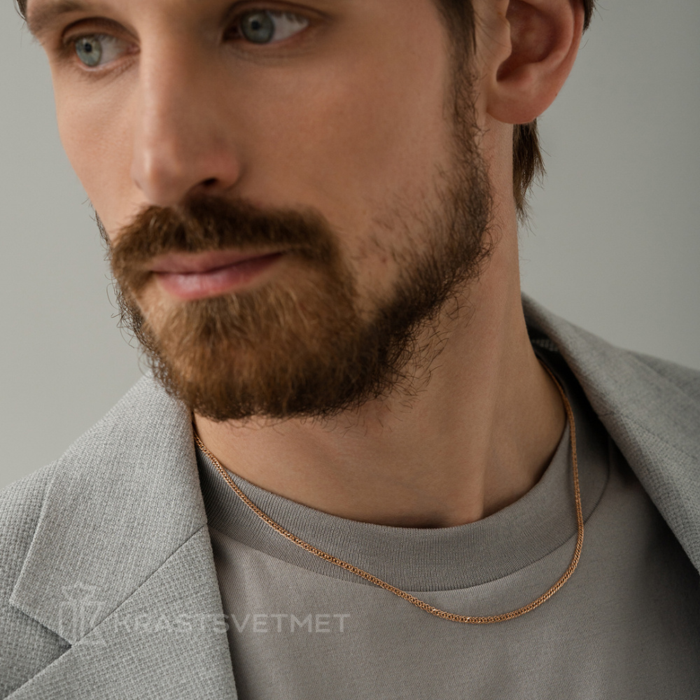 Полновесная цепь из красного золота 585 пробы представлена в классическом плетении «двойной ромб»