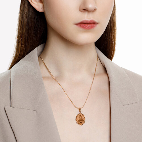 Подвеска из красного золота с иконой Божией Матери – это священное и глубоко символическое украшение, которое несет в себе духовное значение и служит защитником для своего владельца