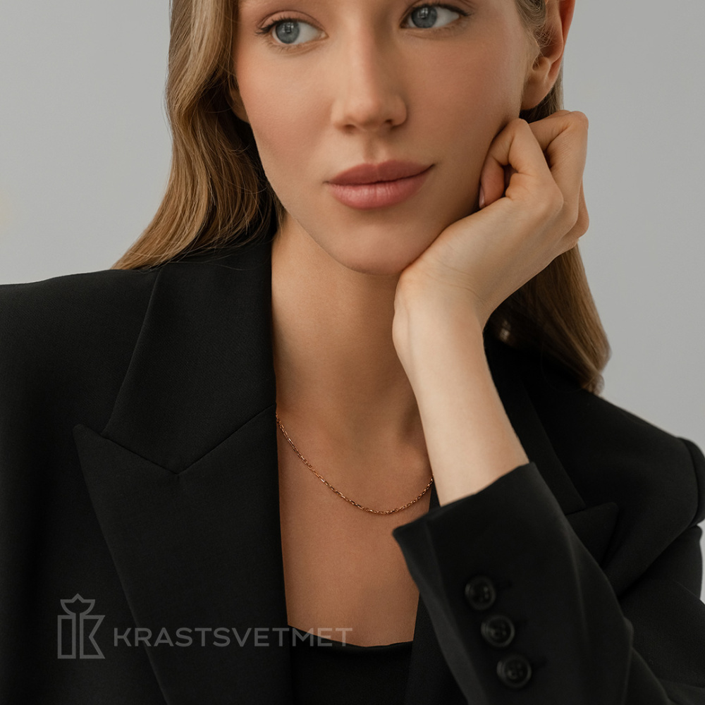 Полновесная крупная цепь из красного золота 585 пробы в классическом плетении «якорное» с удлинёнными звеньями овальной формы понравится как мужчинам, так и женщинам