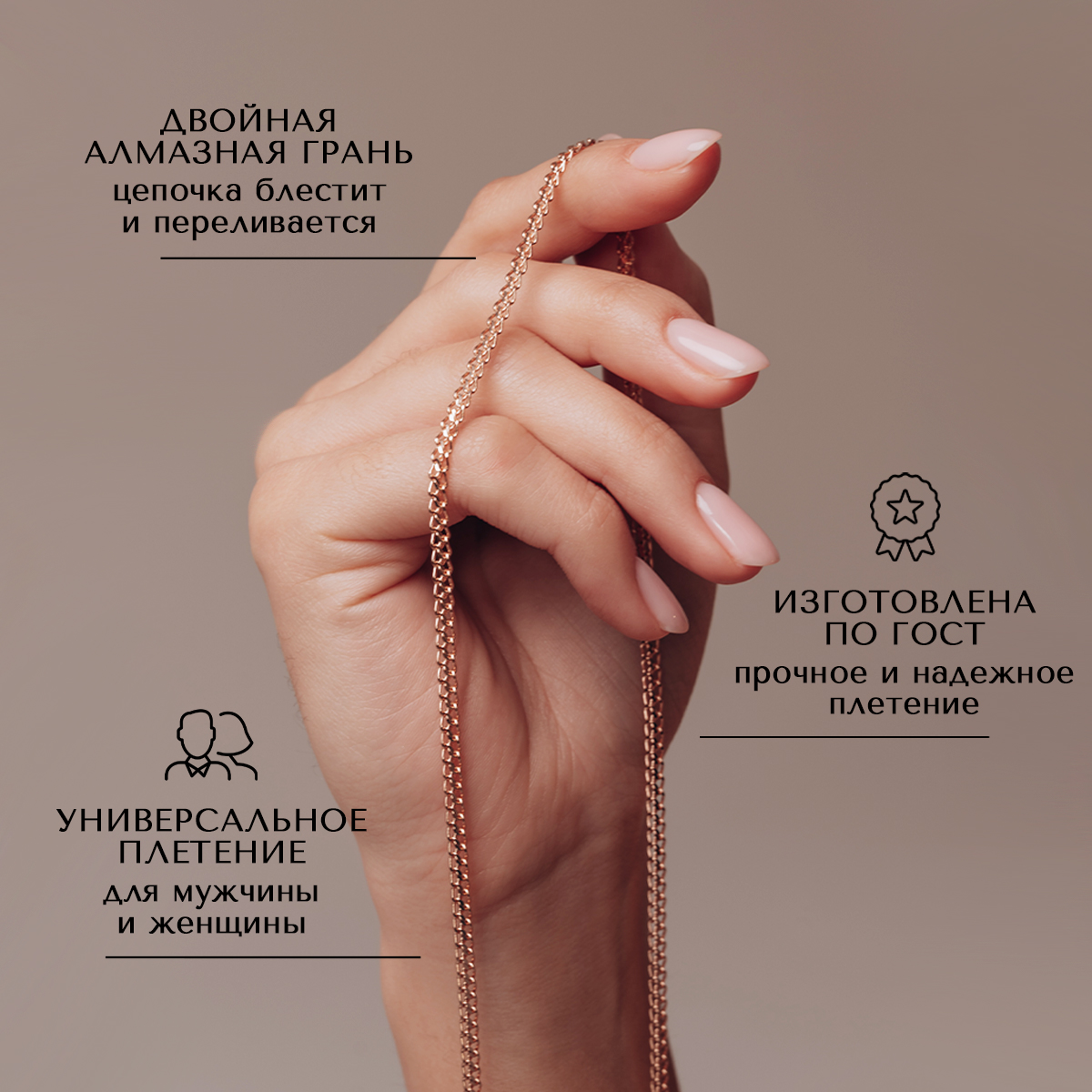 Цепь, красное золото, без камней, проба 585