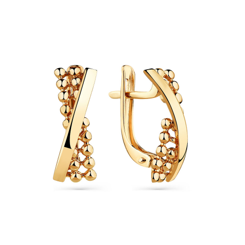 Серьги с оригинальным дизайном из пересекающихся фантазийных линий, выполнены из красного золота 585 пробы. Такое украшение станет модной изюминкой в повседневном или деловом образе, а также стильно дополнит вечерний или коктейльный наряд. Тип замка - английский, самый надежный и удобный.