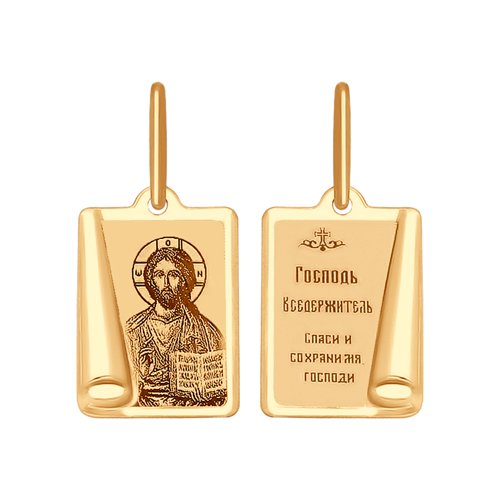 Православная нательная иконка из красного золота 585 пробы с алмазной гранью и лазерной обработкой. Лик: Господь Вседержитель. В комплект поставки входит: