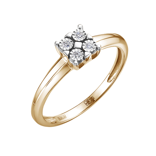 Лаконичное и элегантное кольцо из комбинированного золота 585 пробы, украшенное четырьмя натуральными бриллиантами, — это украшение, созданное для тех, кто ценит сдержанную роскошь и продуманный минимализм