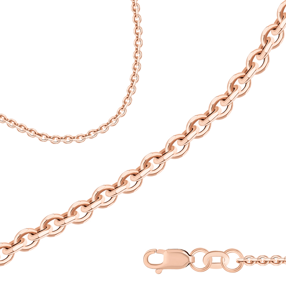 Облегчённая цепь из красного золота 585 пробы с классическим плетением «Якорное» и роскошной отделкой алмазной гранью