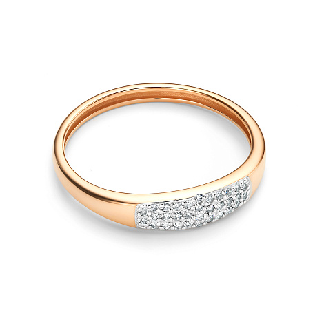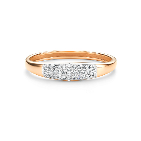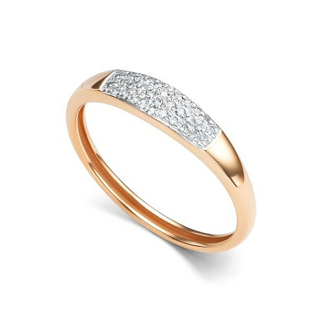Стильное и современное кольцо, украшенное дорожками сверкающих бриллиантов, выполнено с сочетанием красного и белого золота 585 пробы