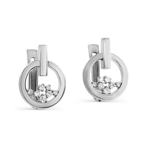 Изящные серьги круглой формы, украшенные бриллиантами, выполнены из белого золота 585 пробы