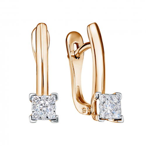 Прекрасные серьги из красного и белого золота 585 пробы с элегантными бриллиантами и надежной английской застежкой