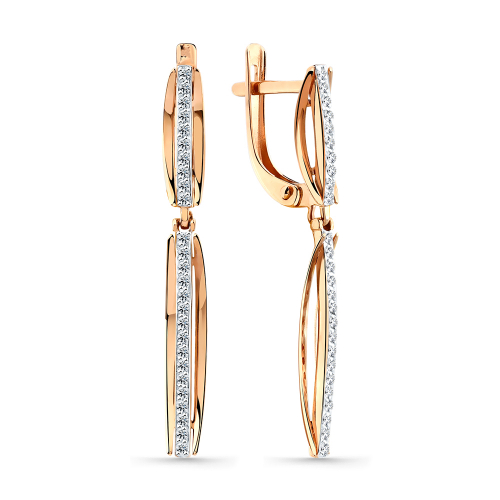 Удлиненные серьги из белого и красного золота 585 пробы с дорожками сверкающих фианитов и английской застежкой — это элегантное украшение, подчеркивающее вашу индивидуальность и утонченный вкус