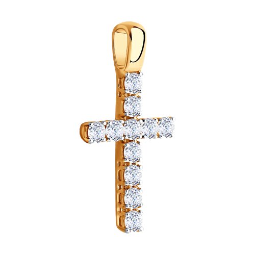 Подвеска в виде декоративного крестика, инкрустированного фианитами, выполнена из красного золота 585 пробы