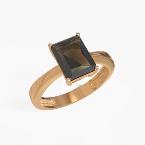 Красивое кольцо из красного золота 585 пробы украшено крупным камнем раух-топаза