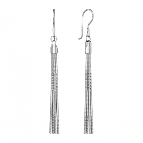 Длинные многослойные серьги-кисти с алмазной гранью выполнены из серебра 925 пробы. Украшение покрыто родием - металл платиновый группы защищает серебро от потемнения, повреждений и придает яркий блеск. Изделие представлено брендом: КРАСЦВЕТМЕТ. В комплект поставки входит: