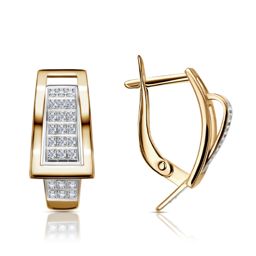 Роскошные объемные серьги выполнены в сочетании красного и белого золота 585 пробы, украшенные искрящимися фианитами в закрепке из белого золота, что визуально увеличивает их объем и подчеркивает блеск и красоту