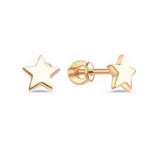 Серьги-пуссеты, в виде звёздочек, выполнены из красного золота 585 пробы, без камней.