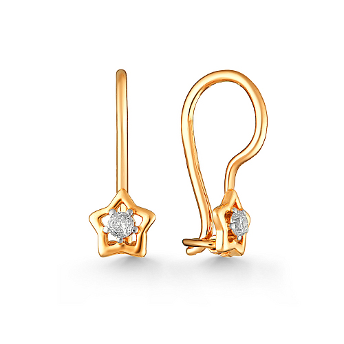 Нежные детские серьги, в виде звёздочек, выполнены из красного золота 585 пробы, украшены сияющими фианитами.
