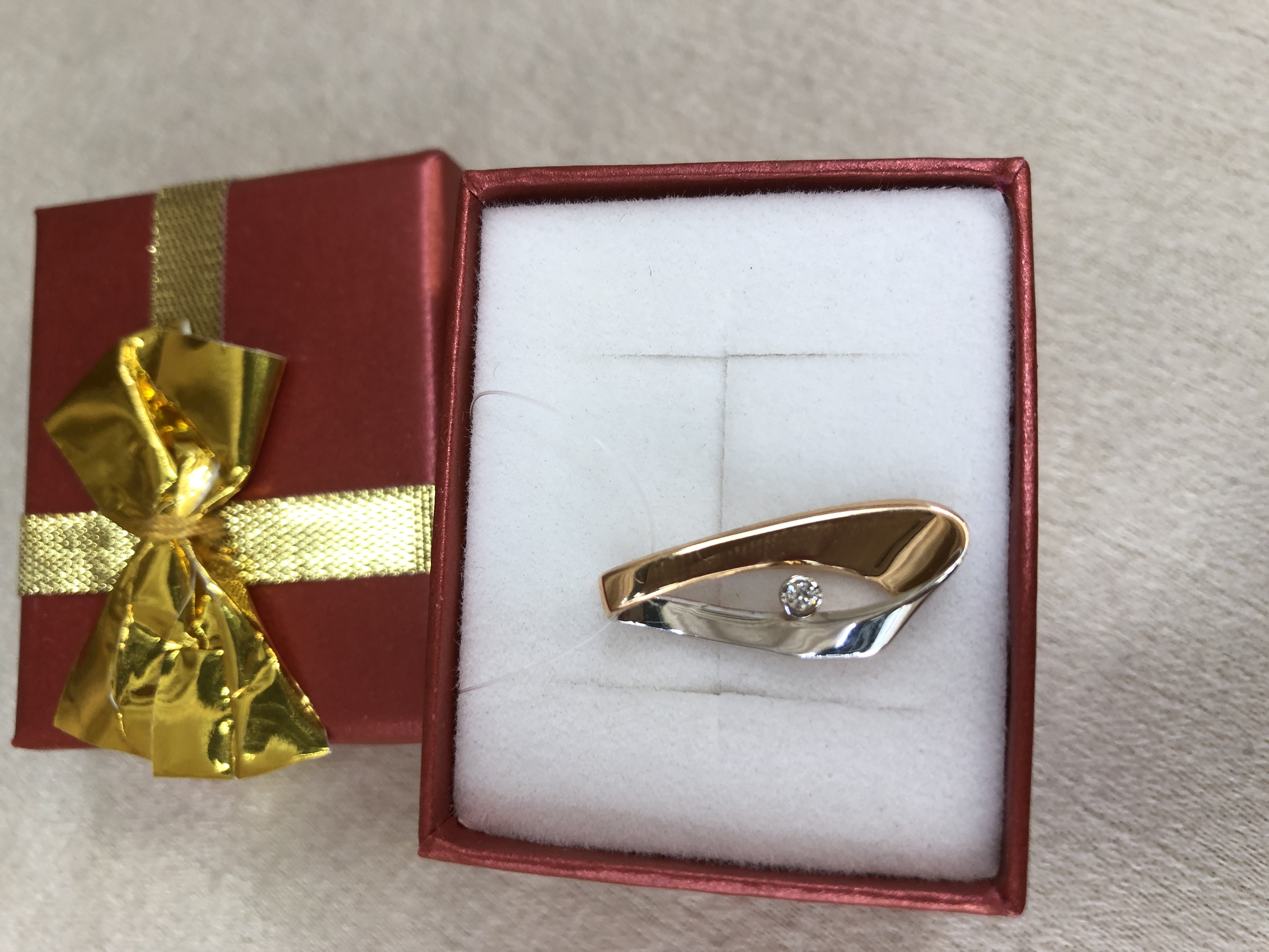 Красивая комбинированная из белого и красного золота подвеска с небольшим акцентным фианитом. Смотрится очень изящно.