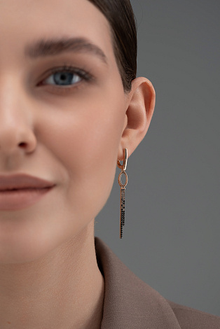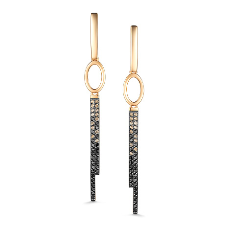 Эффектные и современные серьги из коллекции Gradient от бренда Алькор — это идеальный выбор для женщин, которые любят смелый стиль и нестандартные решения. Удлинённый силуэт подчёркнут контрастным градиентом из чёрных и коньячных бриллиантов, плавно перетекающим от насыщенного тёмного оттенка к тёплому золотисто-коричневому. Изделие выполнено из красного золота 585 пробы, которое гармонично сочетается с природными тонами камней. Серьги впечатляют не только длиной (57 мм), но и тонкой проработкой каждой детали. Средняя характеристика камней: 52 Бриллиант Круг 57 0.334 7/6 черный(HPHT) 28 Бриллиант Круг 57 0.164 7/6 коньяк В комплект поставки входит: