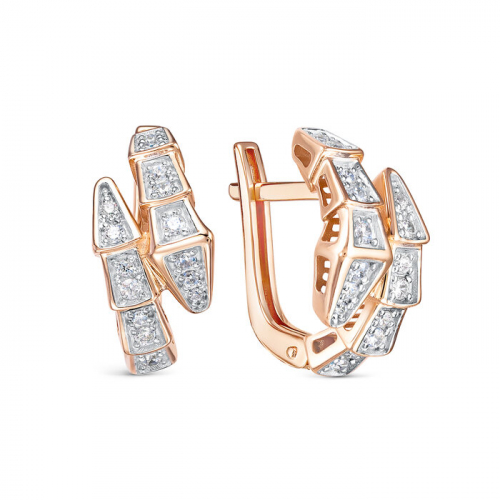 Стильные серьги, украшенные сверкающими фианитами, выполнены из красного и белого золота 585 пробы. Эти серьги в форме змеи, символизирующей мудрость и таинственность, придадут вашему образу неповторимый шарм и загадочность. Тип замка - английский, самый надежный и удобный.