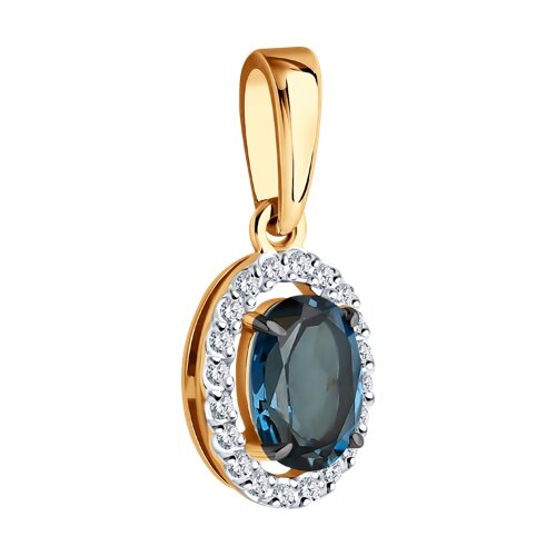 Изысканное и элегантное украшение, которое сочетает в себе красоту натуральных камней и оригинальный дизайн. Подвеска изготовлена из красного и белого золота, что придает ей уникальный и стильный вид. Овальная форма подвески придает ей мягкость и женственность, что делает её идеальной для повседневного ношения или специальных случаев. Центральный элемент подвески – топаз Лондон, который известен своим насыщенным синим цветом и глубоким блеском. Этот камень символизирует мудрость, спокойствие и защиту. По кругу топаза расположены сверкающие фианиты, усиливая эффект центрального камня и придавая подвеске дополнительное сияние. Изделие изготовлено брендом SOKOLOV. Средняя характеристика камней: 20 × Фианит недраг Бесцветный Круг 1.00 ~0,170 кар, 1 × Топаз Лондон Овал 7.00*5.00 ~0,863 кар В комплект поставки входит: