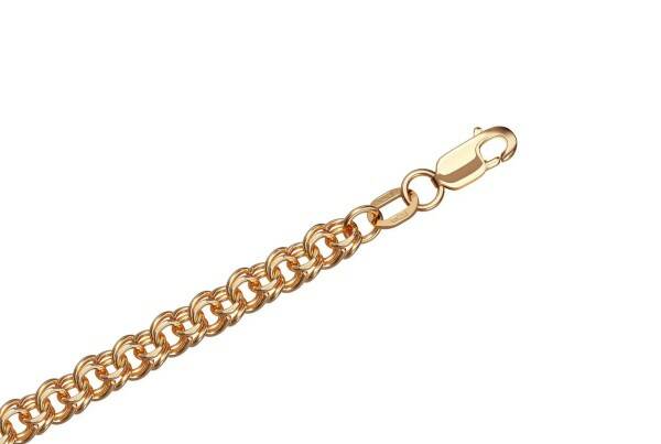 Цепь из красного золота 585 пробы с плетением «Бисмарк Гарибальди» — это прочное и качественное украшение, оснащённое шикарной алмазной гранью. Благодаря сверхпрочному плетению и специальному покрытию, оно стабильно остаётся лидером продаж, идеально переливаясь и играя светом при каждом движении. Фантастически крепкое и долговечное, оно предназначено для ежедневного ношения и прекрасно выдерживает нагрузку тяжелых подвесок вроде нательных крестиков или талисманов. Как мужчины, так и женщины смогут оценить красоту и функциональность данной модели, ставшей символом надёжности и хорошего вкуса. Диаметр проволки 0,50мм. Предсталвено брендом КРАСЦВЕТМЕТ.