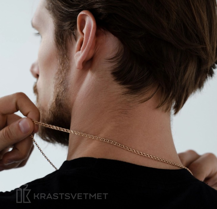 Цепь из красного золота 585 пробы с плетением «Бисмарк Гарибальди» — это прочное и качественное украшение, оснащённое шикарной алмазной гранью