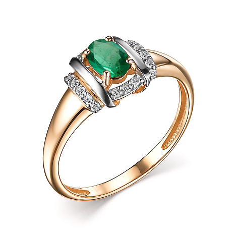 Роскошное кольцо выполнено в сочетании красного и белого золота 585 пробы, украшено великолепным изумрудом и россыпью сияющих бриллиантов