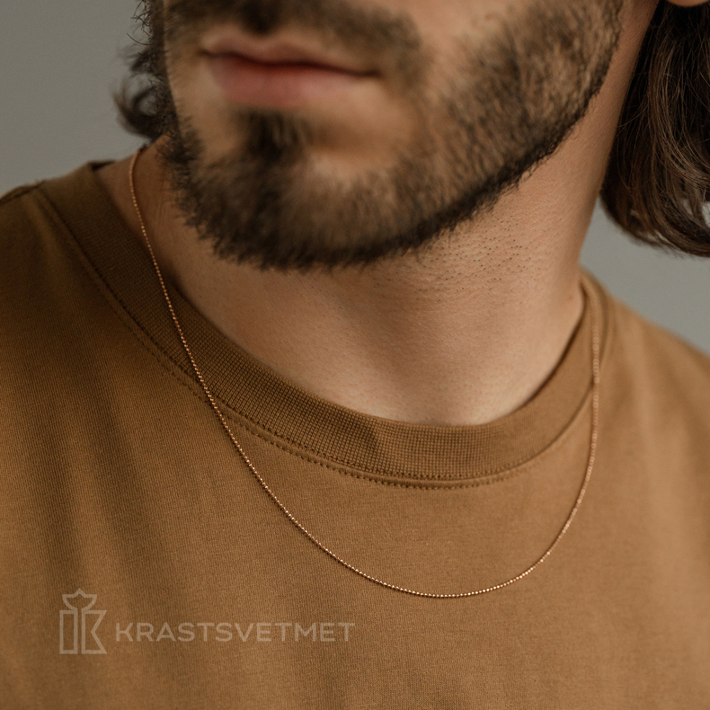Яркая и оригинальная цепь из красного золота 585 пробы покоряет своим уникальным плетением из мелких шариков с бриллиантовым блеском.Технология алмазной обработки придает каждому звену особенный блеск, заставляя цепь сверкать. Такая игра света создает впечатление настоящей россыпи самоцветов на коже, даря чувство особого шика и гармонии. Уникальность этой цепи заключается в способности идеально дополнить стиль как мужчины, так и женщины, придавая облику загадочность и особое благородство. Диаметр проволки 1,00. Представлено брендом КРАСЦВЕТМЕТ. В комплект поставки входит: